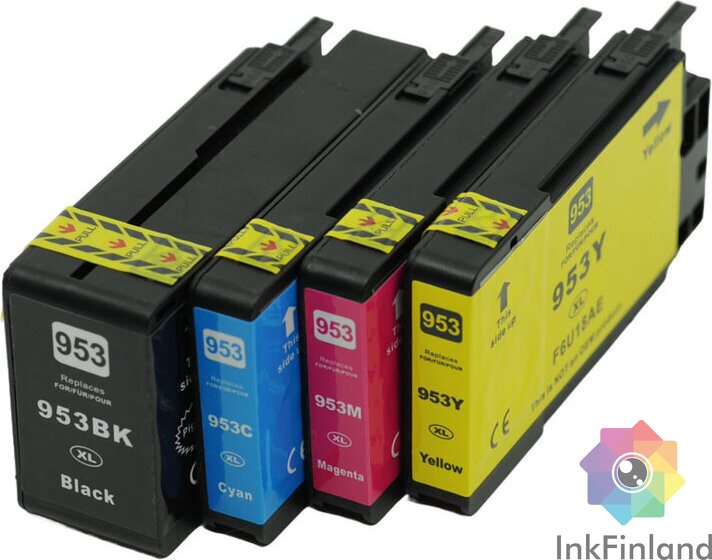 Laadukas ja riittoisa tarvikepatruuna HP tulostimiin. HP 953XL multipack edulliseen hintaan laadukkaat tarvikekasetit. Huomattava säästö alkuperäisiin verrattuna.